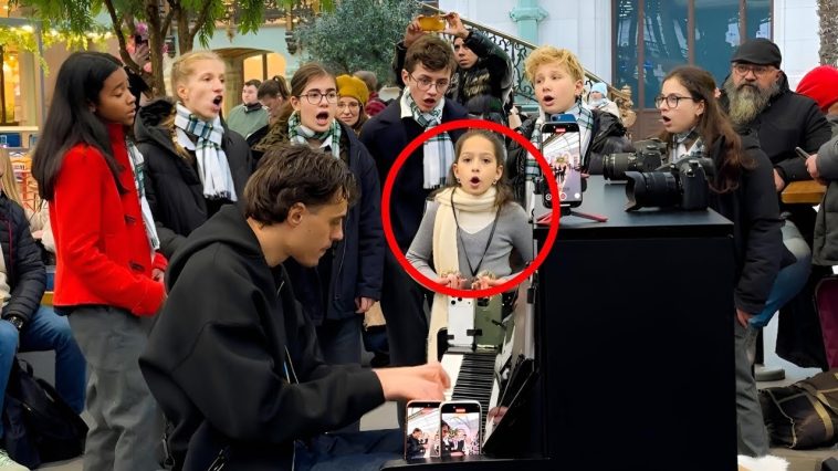 The video begins with the young girl, only 9 years old, timidly asking Aurélien if he could play “Carol of the Bells.” With a warm smile, Aurélien agrees and starts the iconic, fast-paced melody. As the music builds, the girl surprises everyone by asking if she can sing along. What follows is a performance so powerful and moving that it leaves the audience in awe.